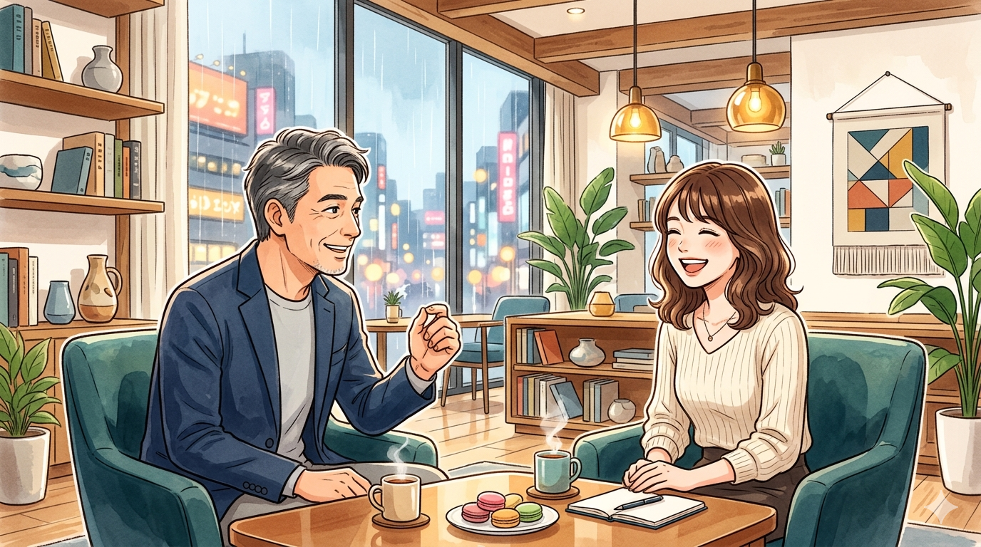 私はひたすら聞き役。「それ面白いですね」「どんなふうにやってみたいんですか?」と質問を返すだけ。50代のパパ活における最大の武器は「ちゃんと話を聞いてくれる大人」であることだと実感しています。